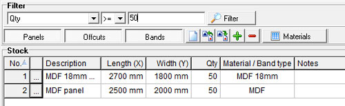 offcuts are displayed in the stock grid; when unchecked